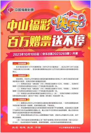 福彩快乐8,向快乐出发,具体活动详情可到中山市各福彩销售站点咨询。