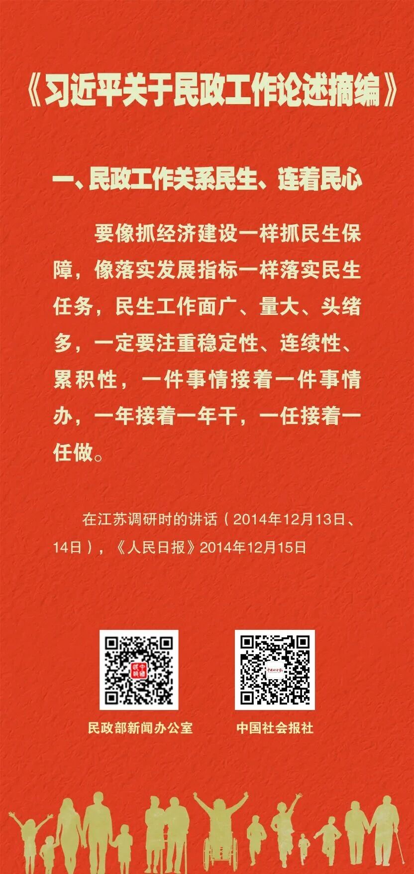 《习近平关于民政工作论述摘编》(以下简称《论述摘编》)已出版发行。《论述摘编》全面反映习近平总书记对新时代民政工作的深邃思考和重大部署,为深入学习领会习近平总书记重要论述提供了权威读本和最新教材。