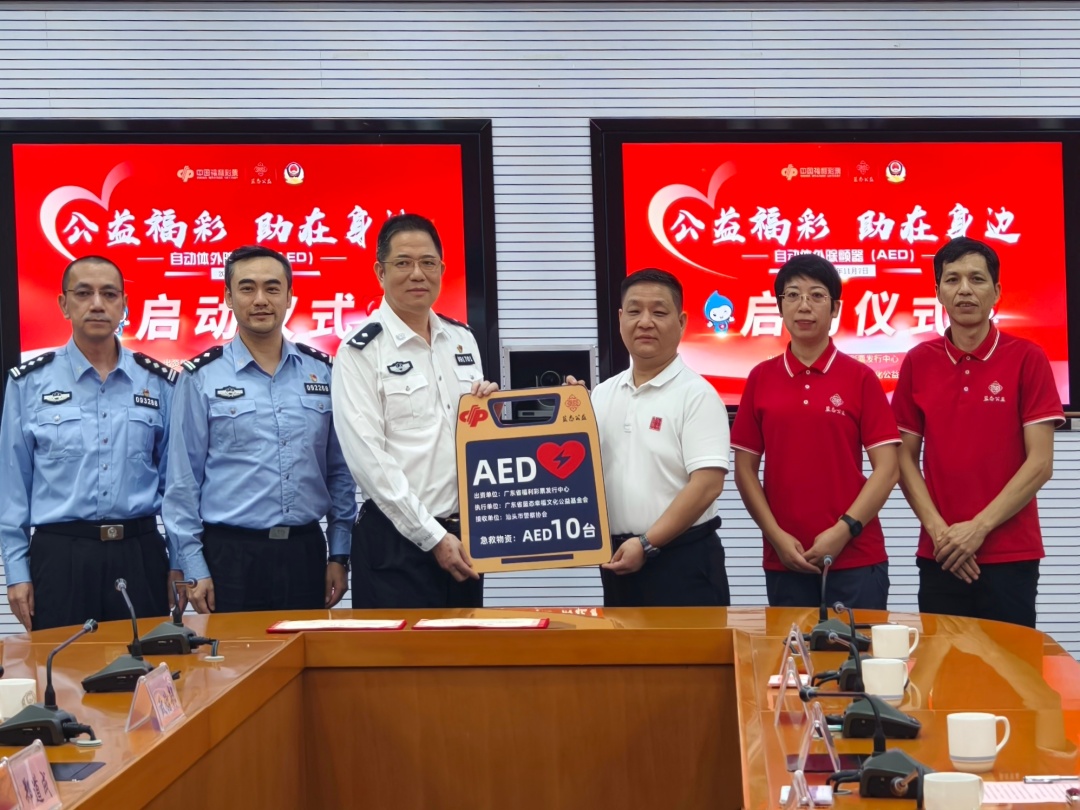 11月7日,“公益福彩 助在身边”公益项目启动仪式在汕头市公安局举办,本次活动汇聚了应急救援与公益力量的双重支持,由出资单位广东省福利彩票发行中心携手执行单位广东省蓝态幸福文化公益基金会为汕头市公安系统配置10台AED,此举旨在为长期奋战在一线、守护人民安全的公安干警增添一道生命保障,共同织密公共安全救助网络。