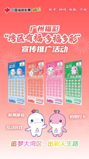 2025 年12月15日10时至12月17日18时,广州福彩推出“湾区有福”主题票线上互动活动。活动期间,市民可通过扫描宣传海报上面的二维码进入互动页面,线上浏览“湾区有福”彩票信息,参与互动游戏还可获得抽奖机会。
