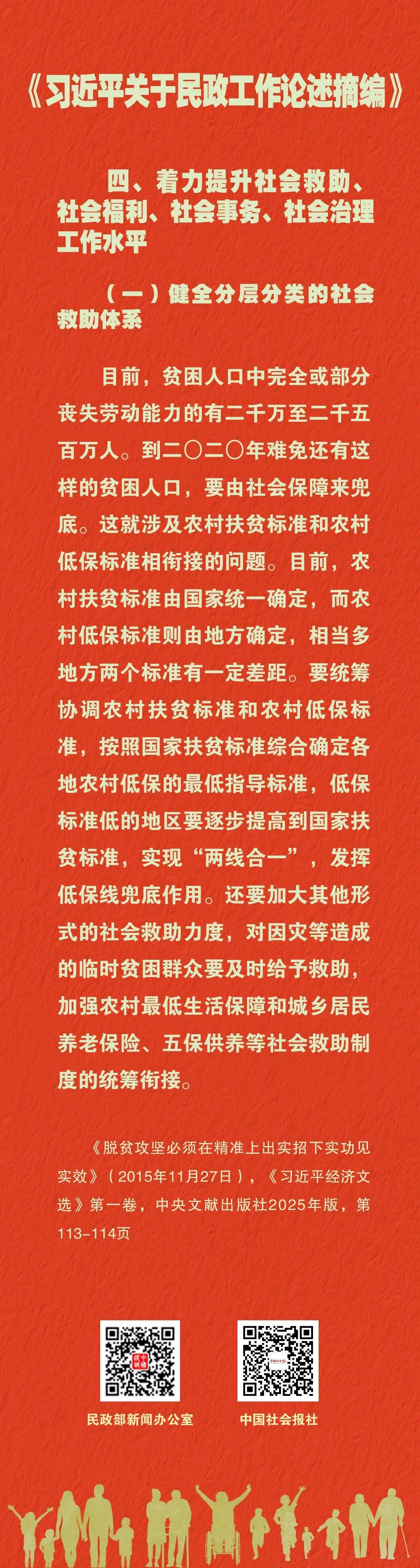 《习近平关于民政工作论述摘编》(以下简称《论述摘编》)已出版发行。《论述摘编》全面反映习近平总书记对新时代民政工作的深邃思考和重大部署,为深入学习领会习近平总书记重要论述提供了权威读本和最新教材。