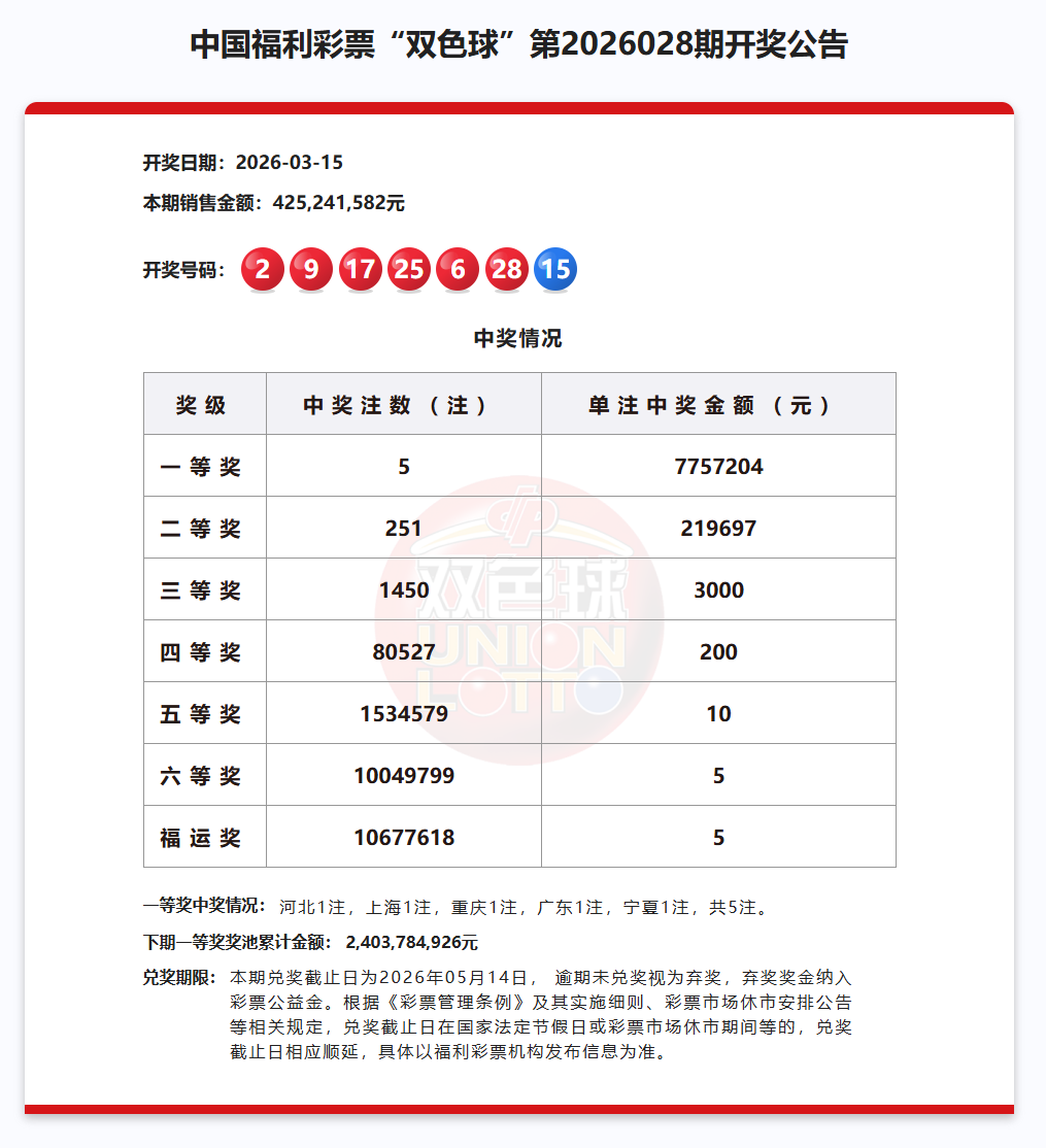 一等奖 河北(1注)上海(1注) 重庆(1注)广东(1注) 宁夏(1注)