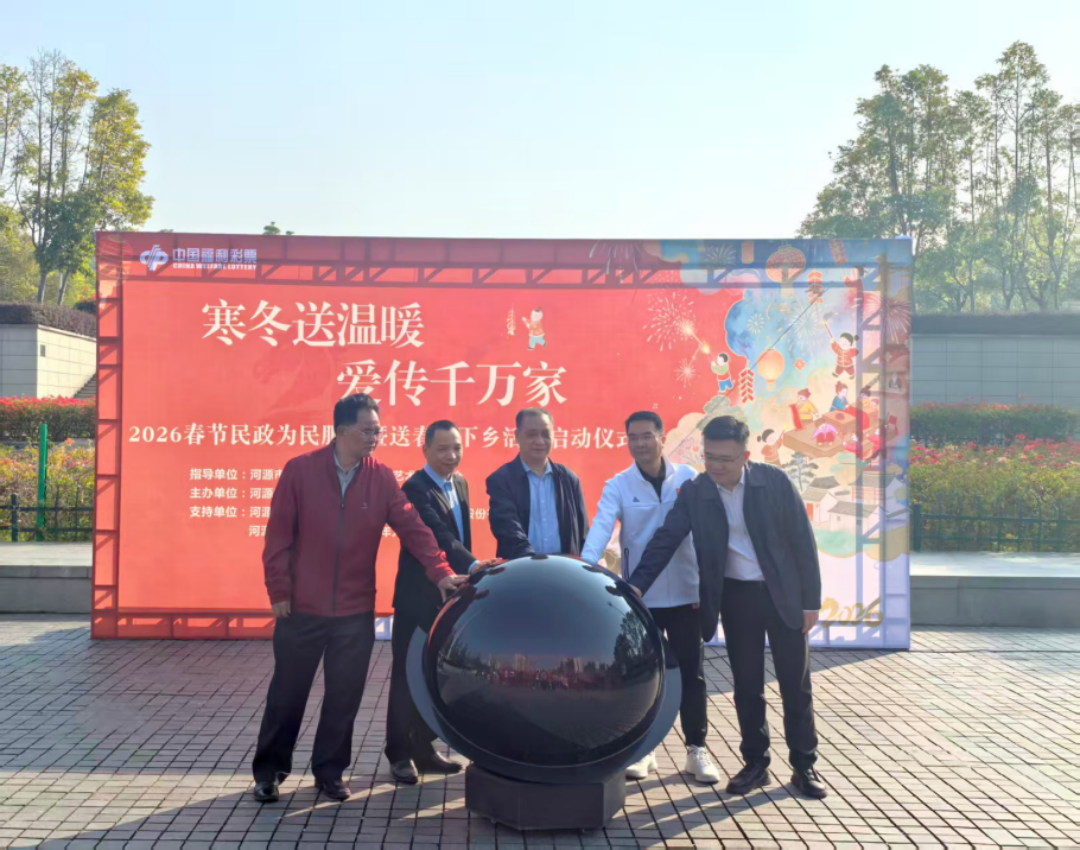 活动现场,随着河源市民政局、市文联、市福利彩票发行中心等单位代表按下启动球,“寒冬送温暖、爱传千万家——2026年春节民政为民暨送春联下乡活动”正式拉开帷幕。