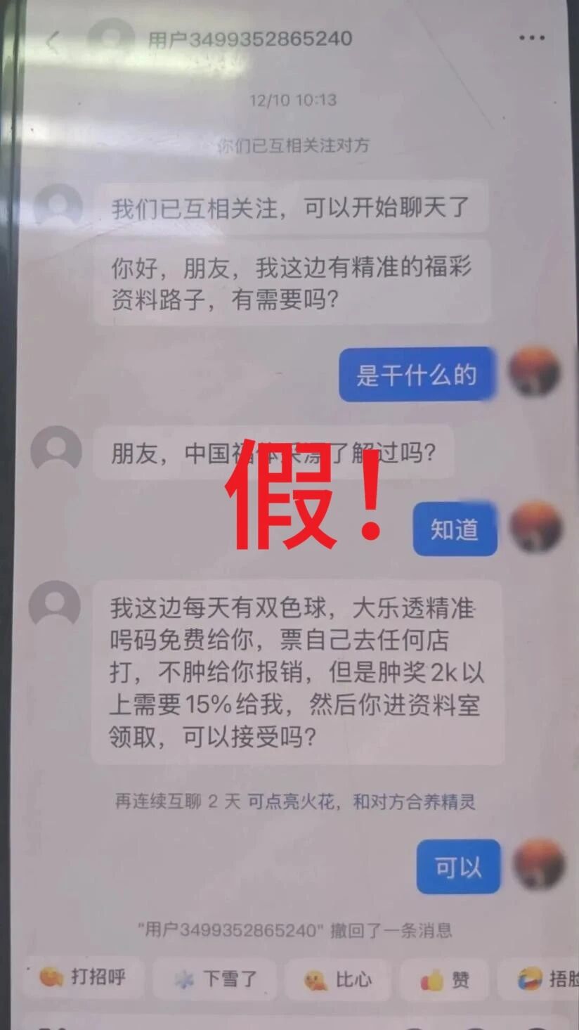 近日,李某在抖音APP上添加了一名陌生人为好友,对方以购买“福利彩票”为诱饵,声称“有精准号码”,引导李某下载了一款名为“乐透福彩”的APP。李某抱着试试看的心态,让客服帮忙代买了一注彩票,没想到竟然“中奖了”,还立即收到了小额现金。于是李某放松警惕,一步步走进诈骗分子设好的圈套。