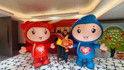 1月31日中午,广州远洋宾馆宴会厅门前,一对高逾两米、活泼可爱的中国福利彩票吉祥物“福福”和“彩彩”迎接四百多位特别的家人陆续入席……