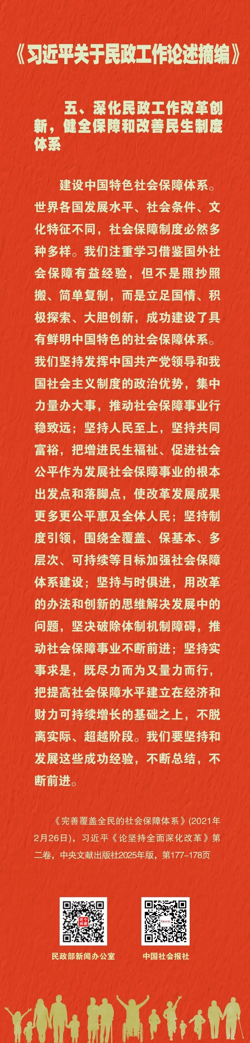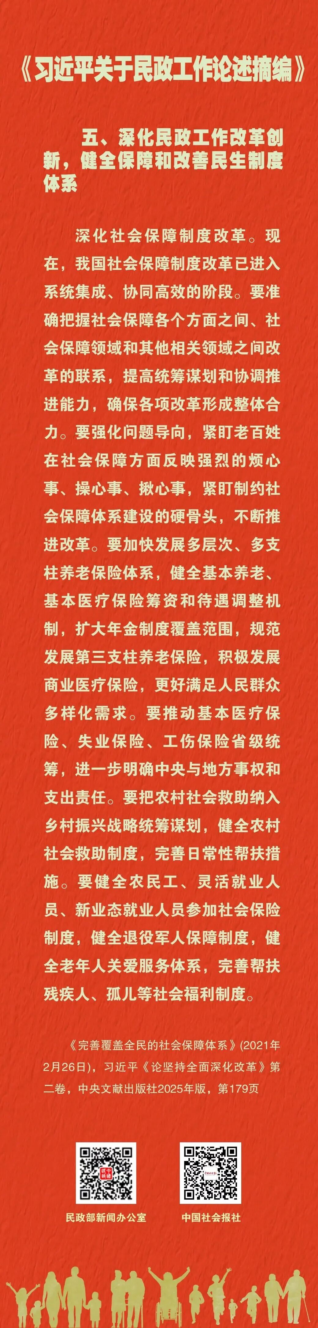 《习近平关于民政工作论述摘编》(以下简称《论述摘编》)已出版发行。《论述摘编》全面反映习近平总书记对新时代民政工作的深邃思考和重大部署,为深入学习领会习近平总书记重要论述提供了权威读本和最新教材。