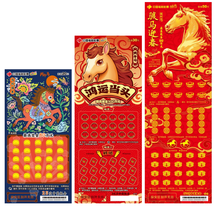 一张张设计精美的福彩即开票(刮刮乐),把年味和祝愿融入方寸票面,成了丙午马年最别致的“福气”打开方式。